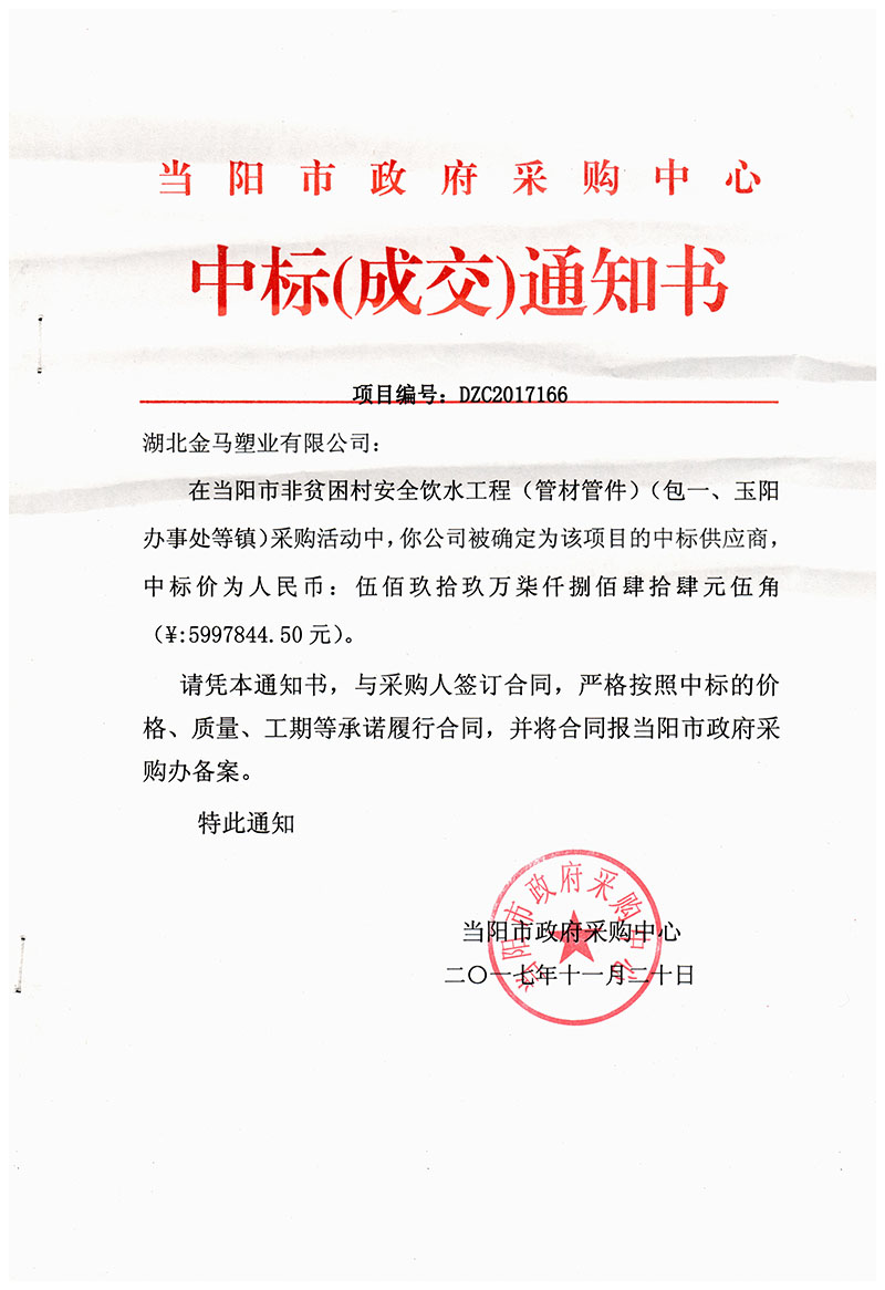 公司新聞 網(wǎng)站首頁 > 公司新聞 祝賀金馬塑業(yè)中標(biāo)當(dāng)陽市安全飲水工程600萬元項(xiàng)目 2021-03-24 閱讀 37548 上一篇: 祝賀金馬塑業(yè)中標(biāo)監(jiān)江高速連接線項(xiàng)目給水工程管網(wǎng)采購項(xiàng)目 下一篇: 公司中標(biāo)900萬元中鐵集團(tuán)武漢長江沙湖水環(huán)境提升工程項(xiàng)目