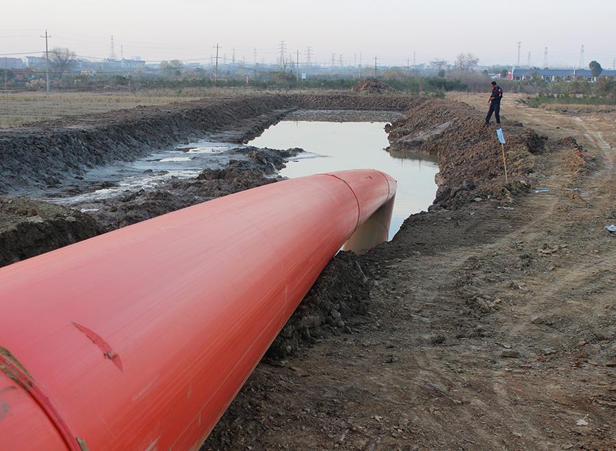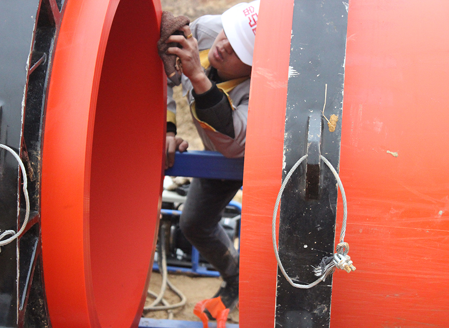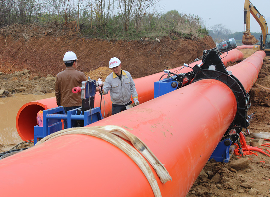 湖北金馬塑業(yè)向以上項目供應及焊接施工DN1000mm及DN800mm等大口徑非開挖鋪設用高密度聚乙烯(PE)排水管,所有管道采用非開挖牽引施工工藝,其中DN1000mm的管道,在省內實現(xiàn)了一次成功牽引到位zui大口徑和單段距離記錄近700米,為該項目總計供應大口徑非開挖管材近10000米。